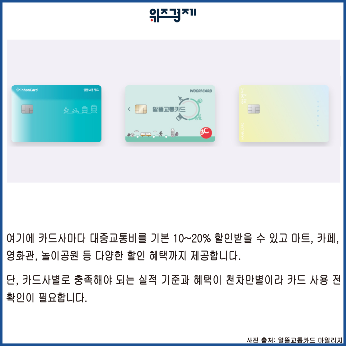 [위즈경제] 이정원 기자 = 치솟는 물가로 소비 심리가 갈수록 위축되면서 교통비 부담을 줄이고 다양한 혜택까지 제공하는 알뜰교통카드가 주목받고 있습니다.