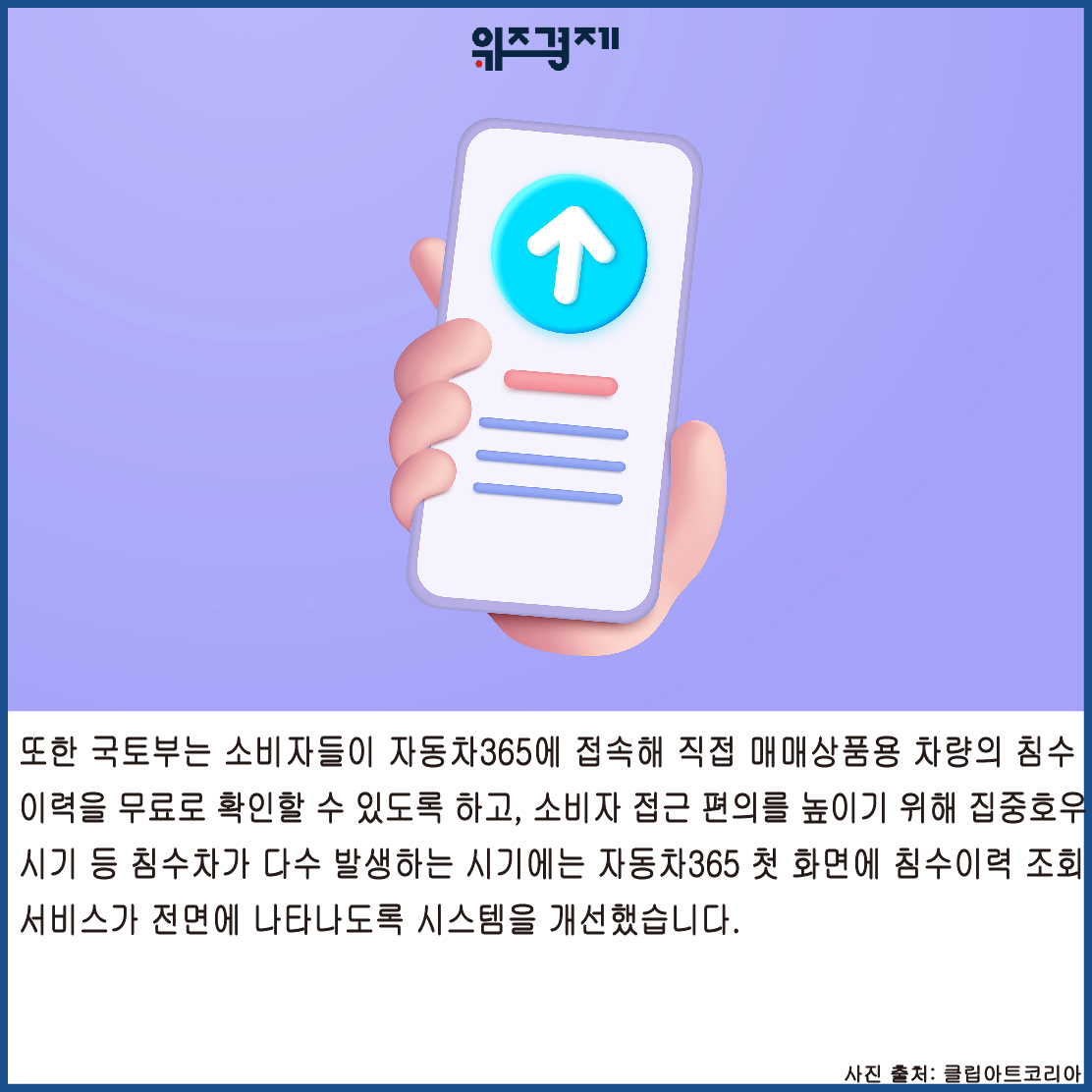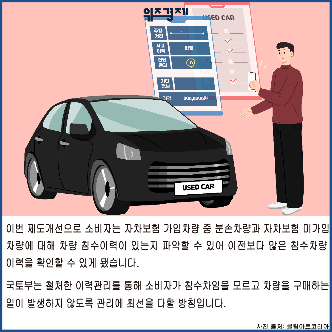 국토부는 철처한 이력관리를 통해 소비자가 침수차임을 모르고 차량을 구매하는 일이 발생하지 않도록 관리에 최선을