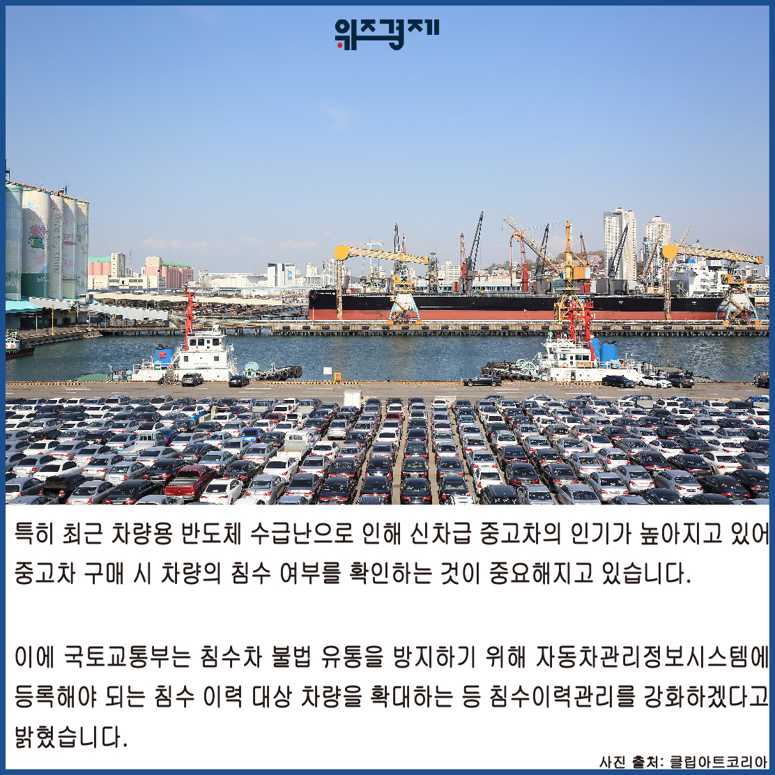 이에 국토교통부는 침수차 불법 유통을 방지하기 위해 자동차관리정보시스템에 등록해야 되는 침수 이력 대상 차량을