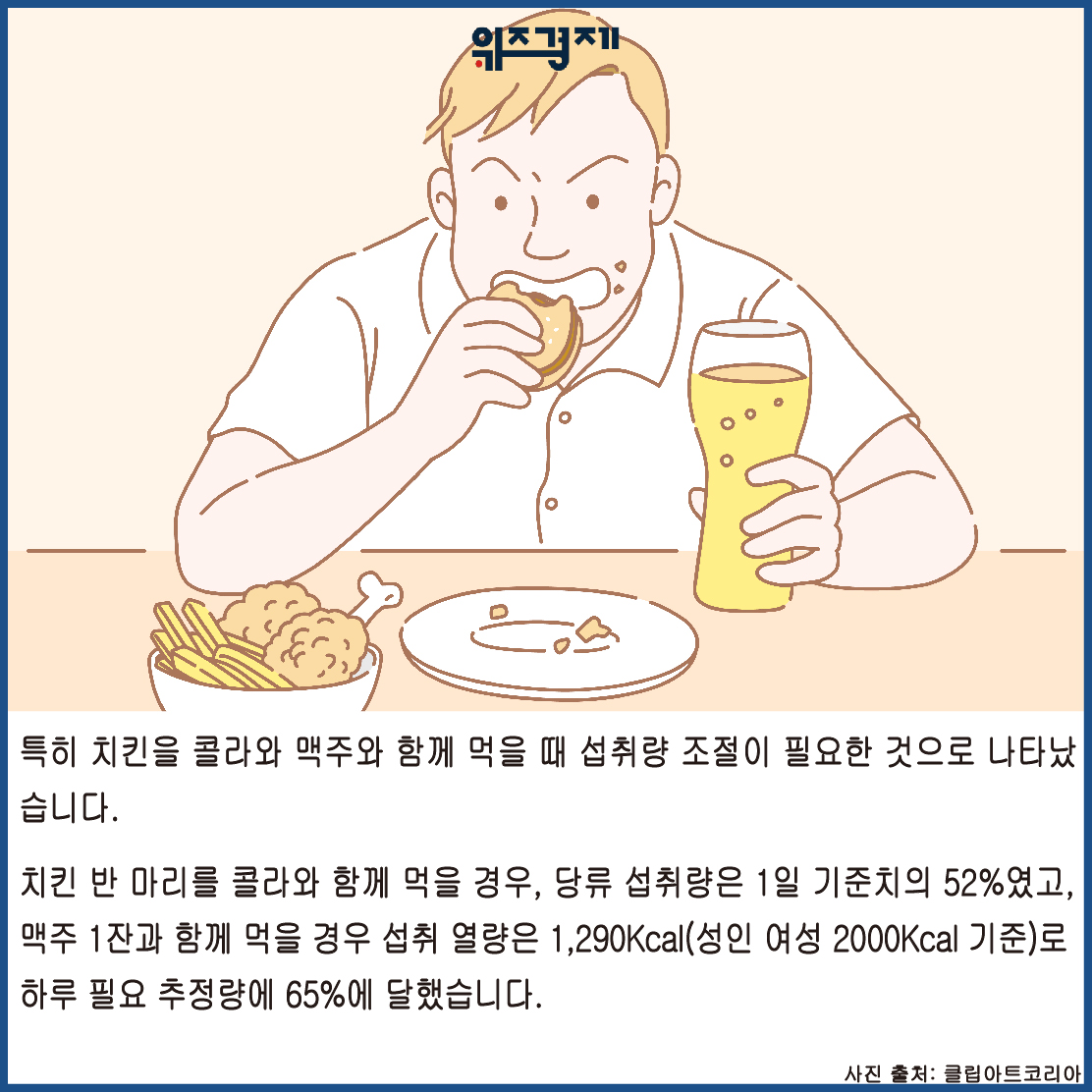 특히 치킨을 콜라와 맥주와 함께 먹을 때 섭취량 조절이 필요한 것으로 나타났습니다.
