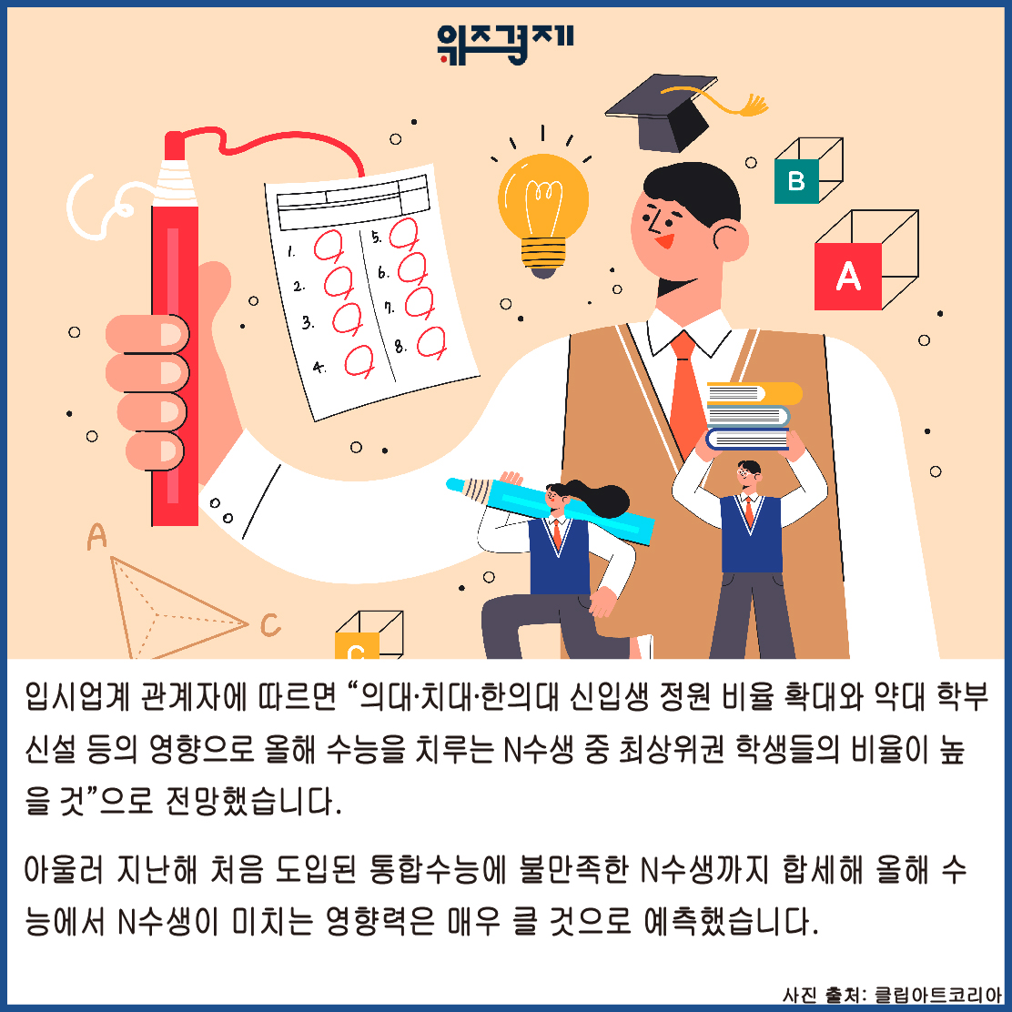 입시업계 관계자에 따르면 “의대∙치대∙한의대 신입생 정원 비율 확대와 약대 학부 신설 등의 영향으로 올해 수능을 치루는 N수생 중 최상위권 학생들의 비율이 높을 것”으로 전망했습니다.