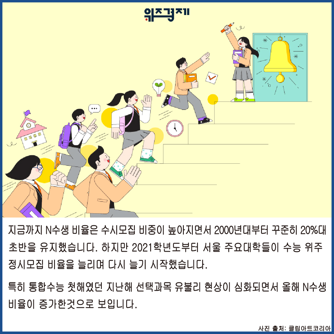 지금까지 N수생 비율은 수시모집 비중이 높아지면서 2000년대부터 꾸준히 20%대 초반을 유지했습니다. 하지만 2021학년도부터 서울 주요대학들이 수능 위주 정시모집 비율을