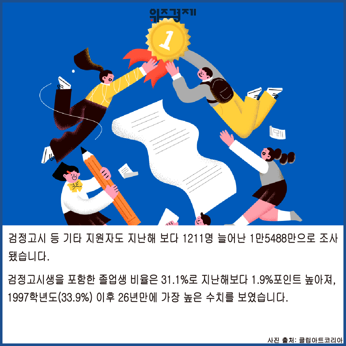검정고시생을 포함한 졸업생 비율은 31.1%로 지난해보다 1.9%포인트 높아져, 1997학년도(33.9%)