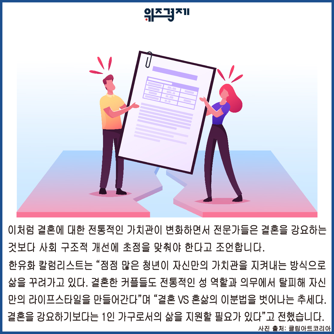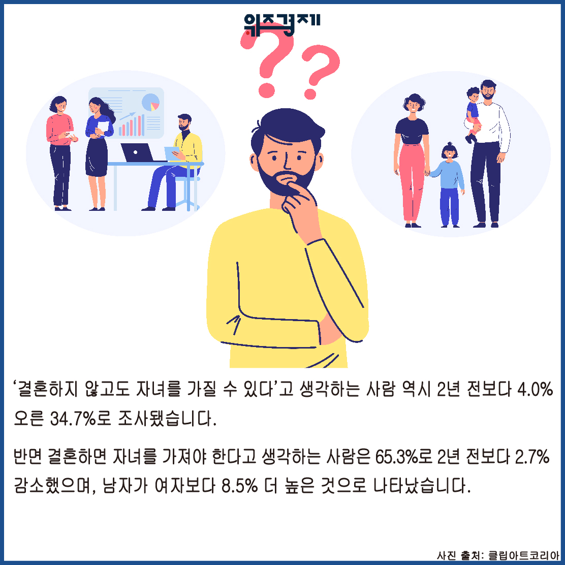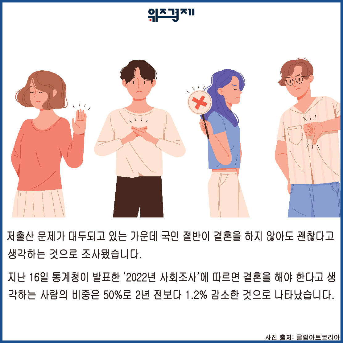 [위즈경제] 이정원 기자 = 저출산 문제가 대두되고 있는 가운데 국민 절반이 결혼을 하지 않아도 괜찮다고 생각하는 것으로 조사됐습니다.