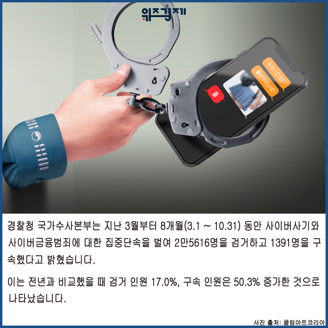 경찰청 국가수사본부는 지난 3월부터 8개월(3.1 ~ 10.31) 동안 사이버사기와 사이버금융범죄에 대한