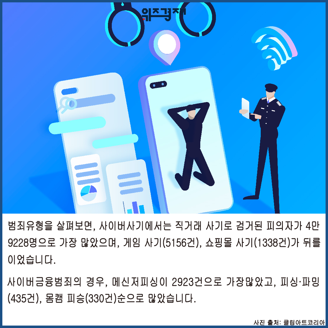 범죄유형을 살펴보면, 사이버사기에서는 직거래 사기로 검거된 피의자가