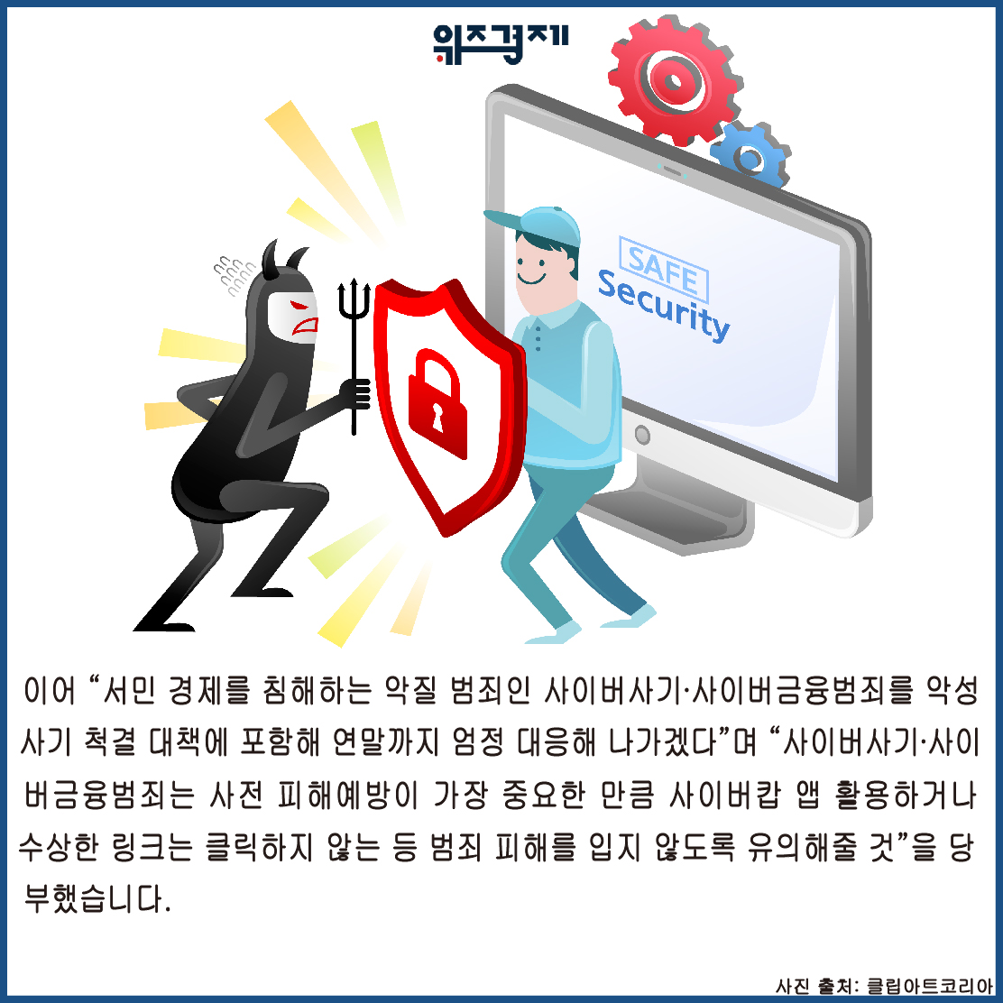 이어 “서민 경제를 침해하는 악질 범죄인 사이버사기∙사이버금융범죄를 악성 사기 척결 대책에 포함해 연말까지 엄정 대응해 나가겠다”며