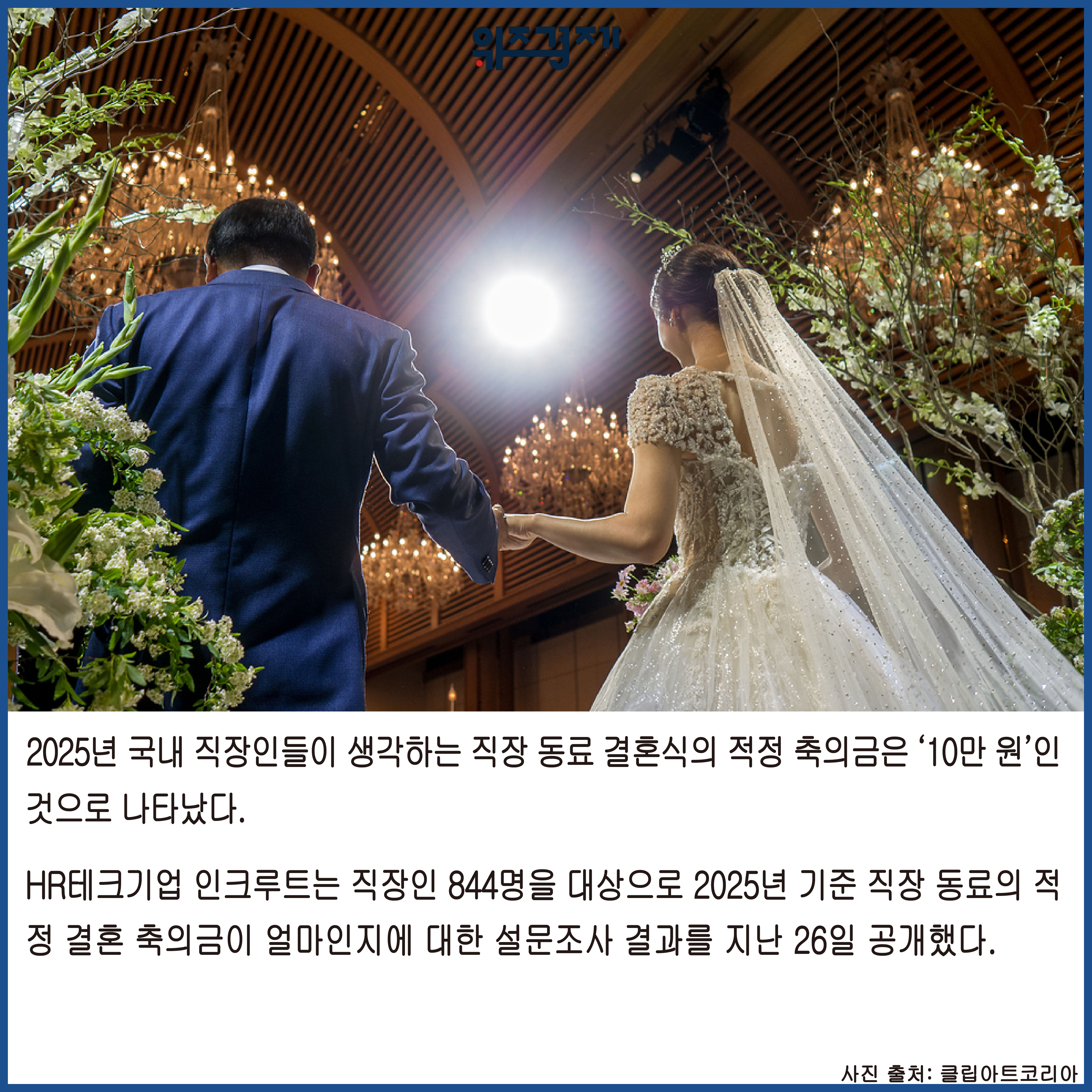 844명을 대상으로 2025년 기준 직장 동료의 적정 결혼 축의금이 얼마인지에 대한 설문조사