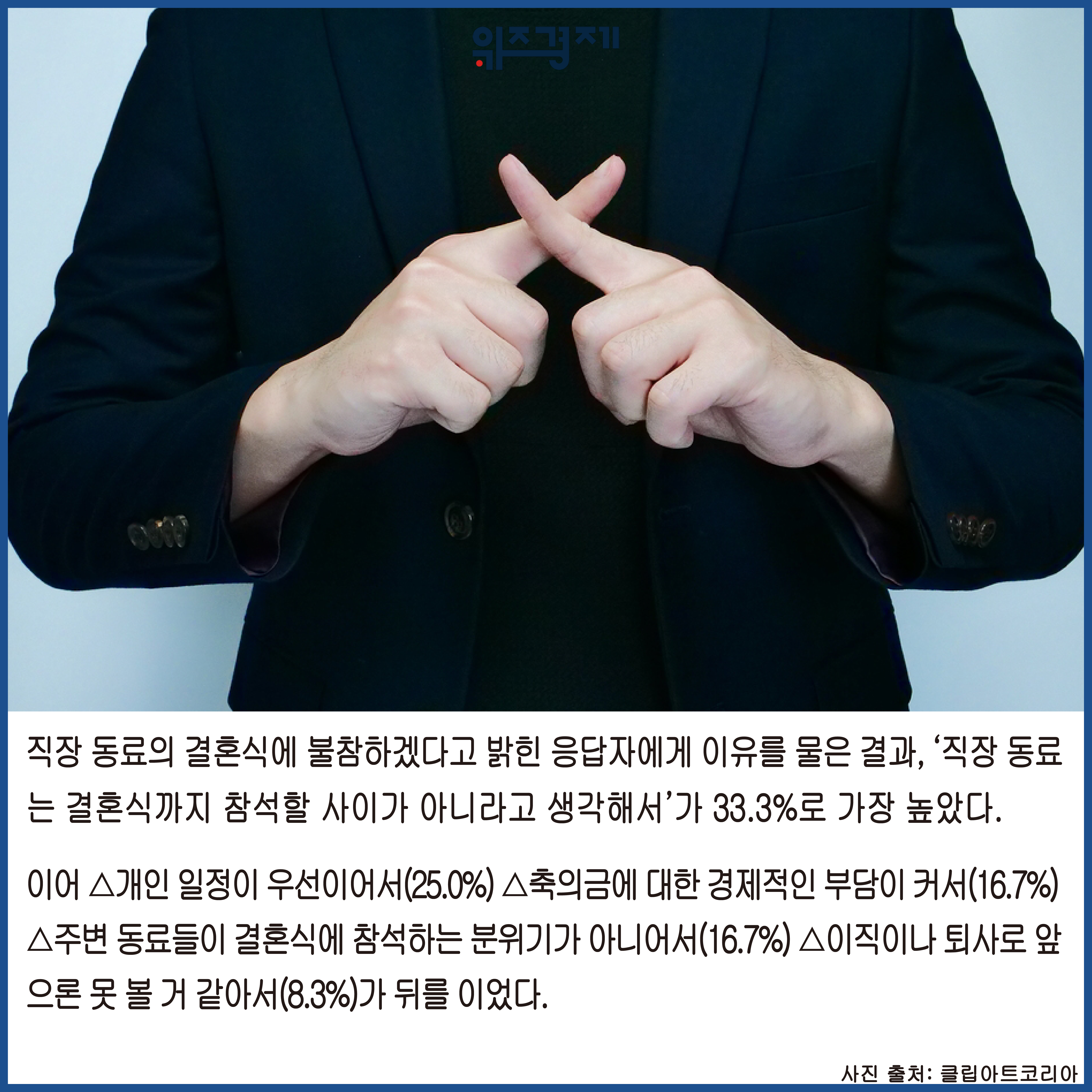 △축의금에 대한 경제적인 부담이 커서(16.7%) △주변 동료들이 결혼식에 참석하는