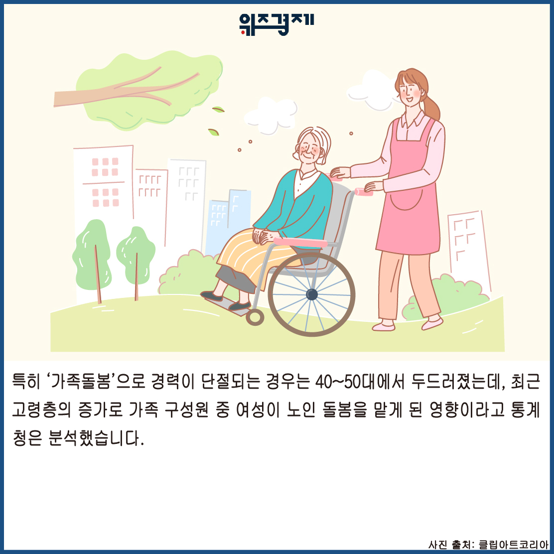 증가로 가족 구성원 중 여성이 노인 돌봄을 맡게 된 영향이라고 통계청은 분석했습니다.