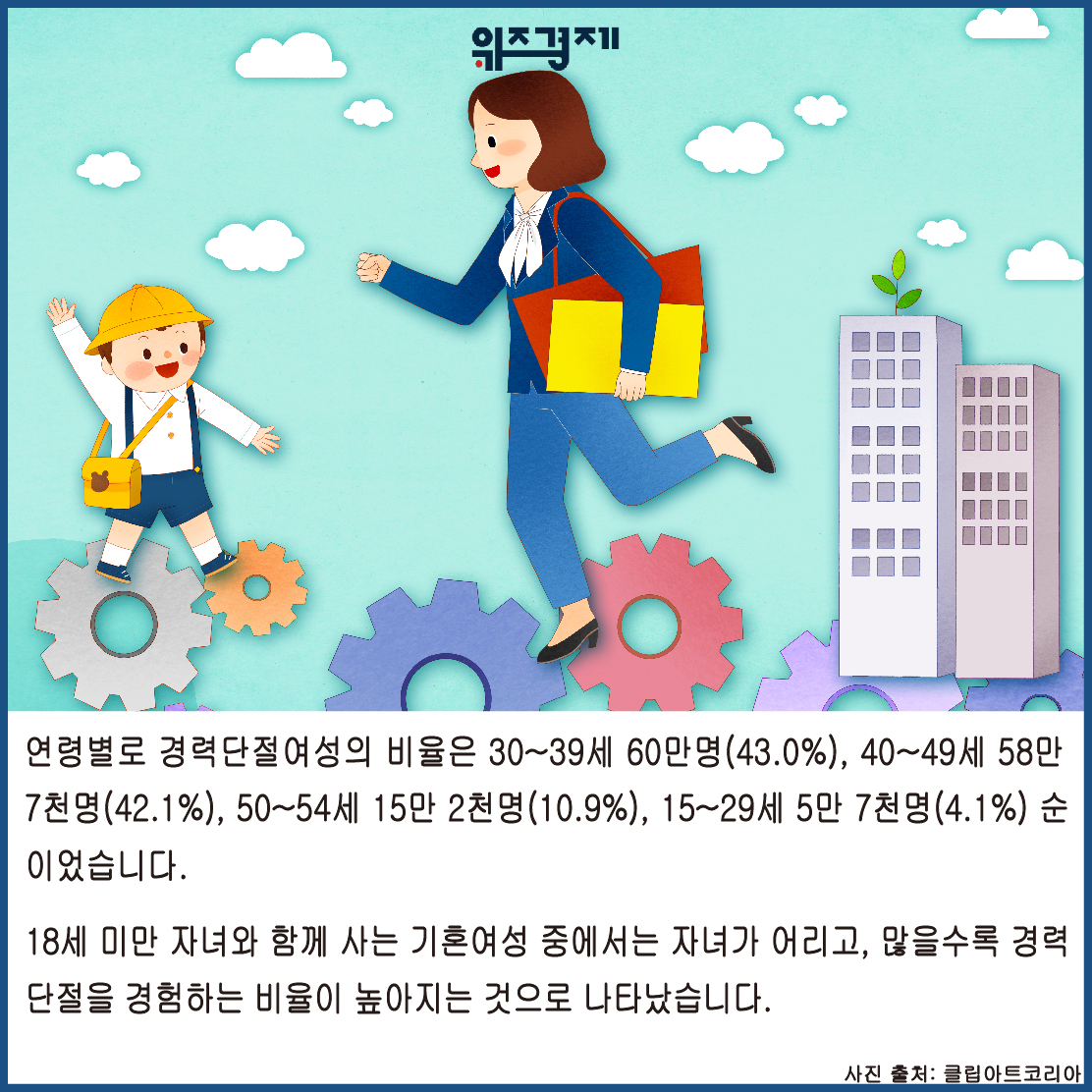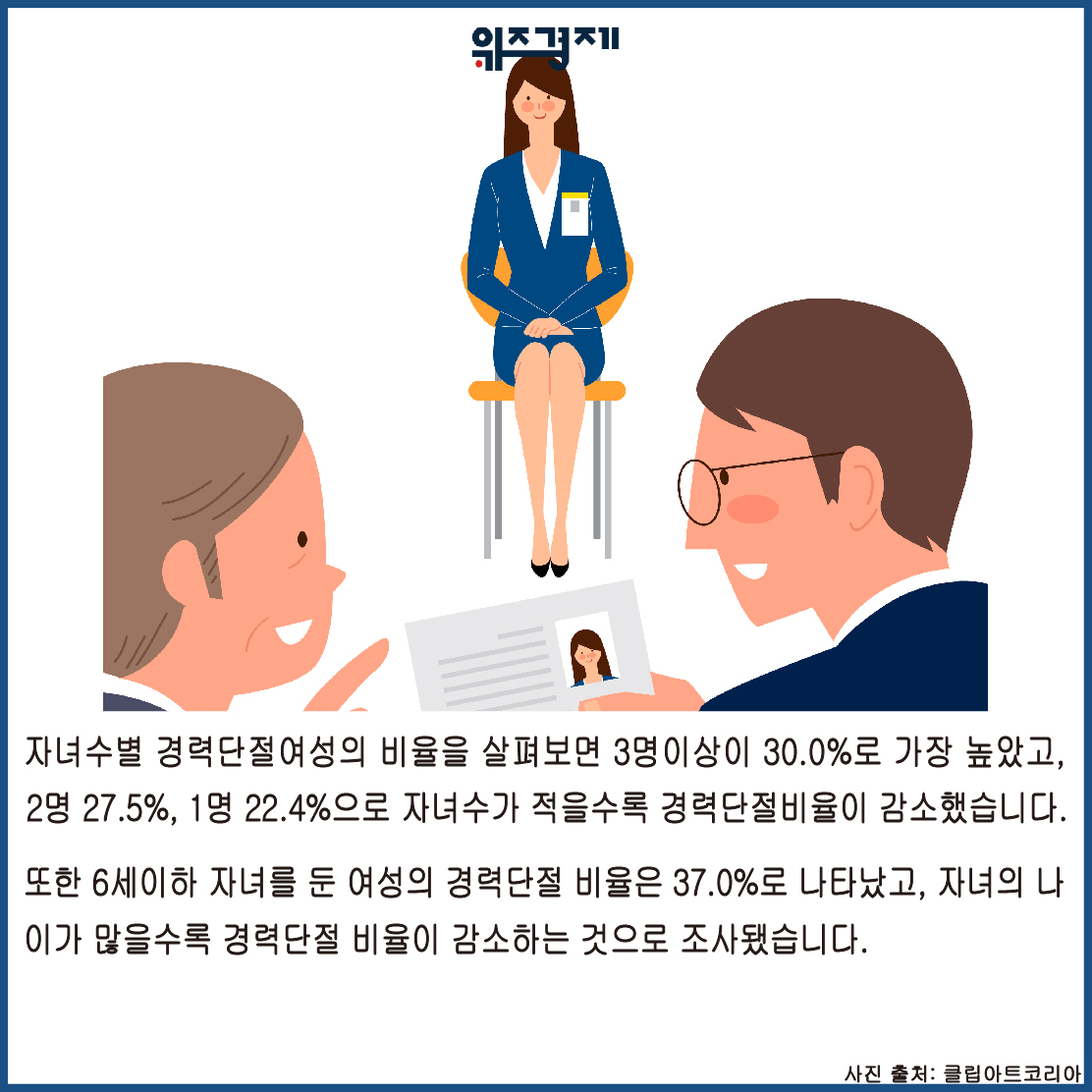 또한 6세 이하 자녀를 둔 여성의 경력단절 비율은 37.0%로 나타났고, 자녀의 나이가 많을수록 경력단절 비율이 감소하는