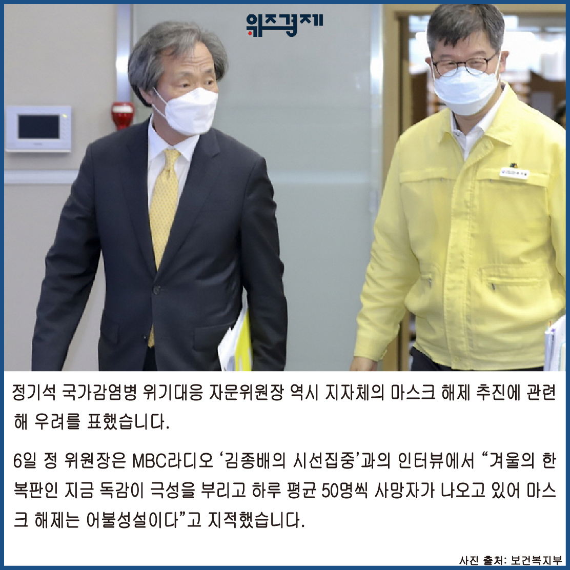 정기석 국가감염병 위기대응 자문위원장 역시 지자체의 마스크 해제 추진에 관련해 우려를 표했습니다.