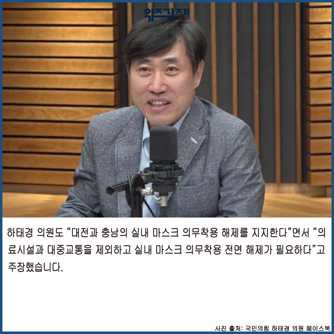 하태경 의원도 “대전과 충남의 실내 마스크 의무착용 해제를 지지한다”면서 “의료시설과 대중교통을 제외하고 실내 마스크 의무착용 전면 해제가