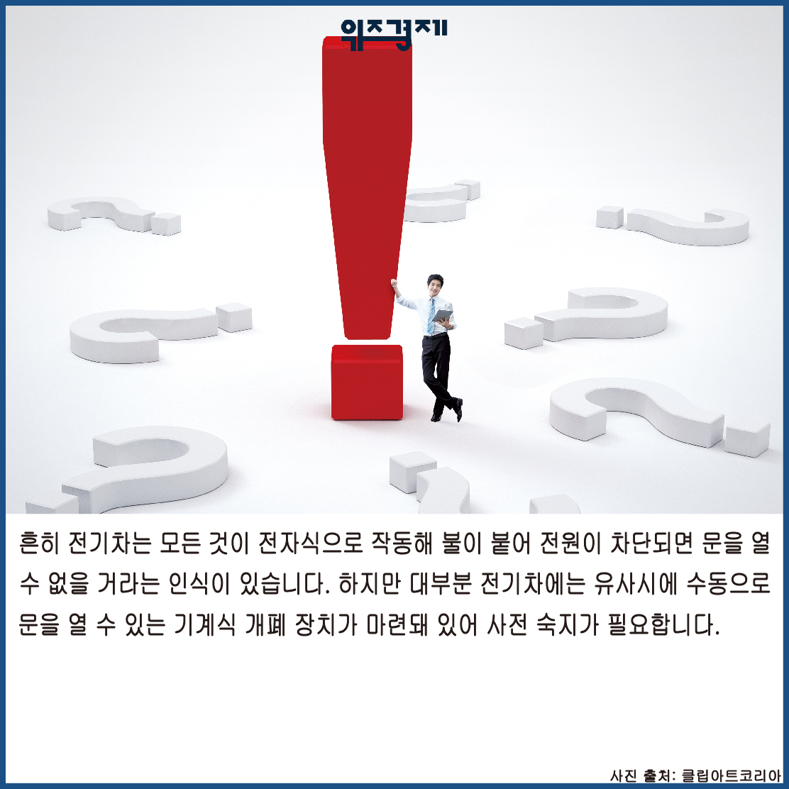 흔히 전기차는 모든 것이 전자식으로 작동해 불이 붙어 전원이 차단되면 문을 열 수 없을 거라는 인식이 있습니다. 하지만 대부분 전기차에는 유사시에 수동으로 문을 열 수 있는 기계식 개폐 장치가 마련돼 있어 사전 숙지가 필요합니다.
