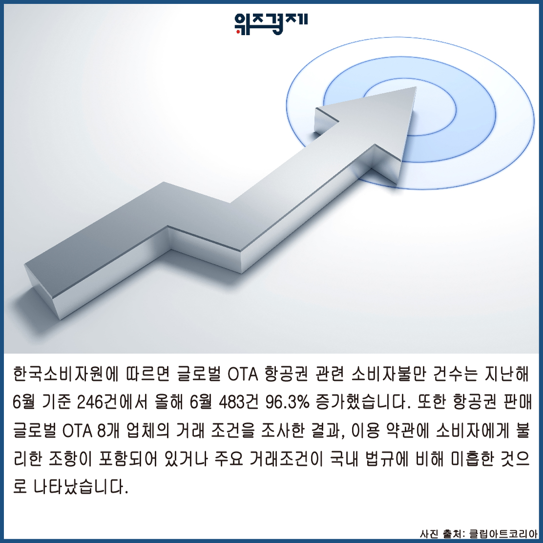 지난해 6월 기준 246건에서 올해 6월 483건 96.3% 증가했습니다. 또한 항공권 판매 글로벌 OTA 8개 업체의 거래 조건을 조사한