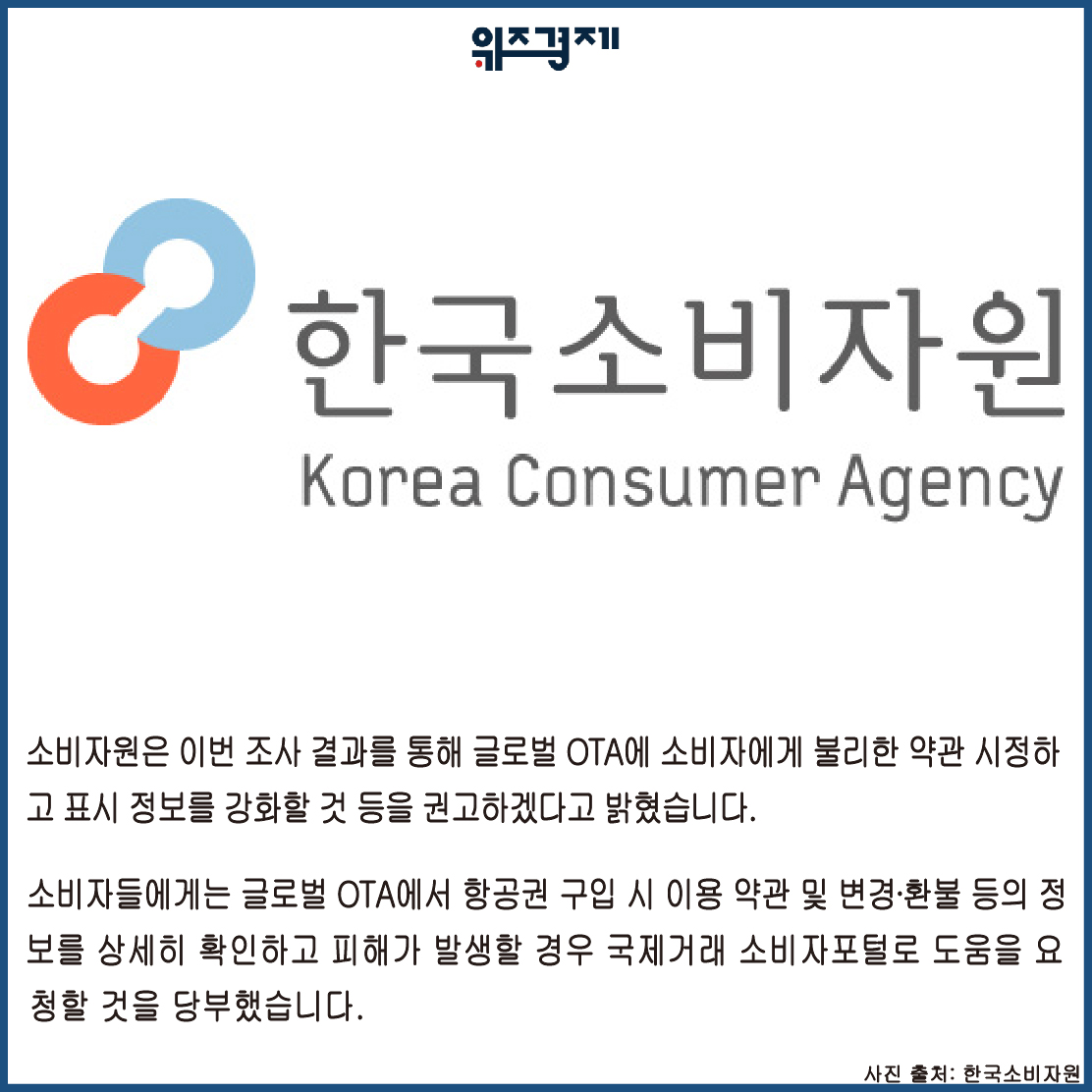 소비자들에게는 글로벌 OTA에서 항공권 구입 시 이용 약관 및 변경∙환불 정보 등을 상세히 확인하고 피해가 발생할 경우 국제거래 소비자포털로 도움을 요청할 것을 당부했습니다.