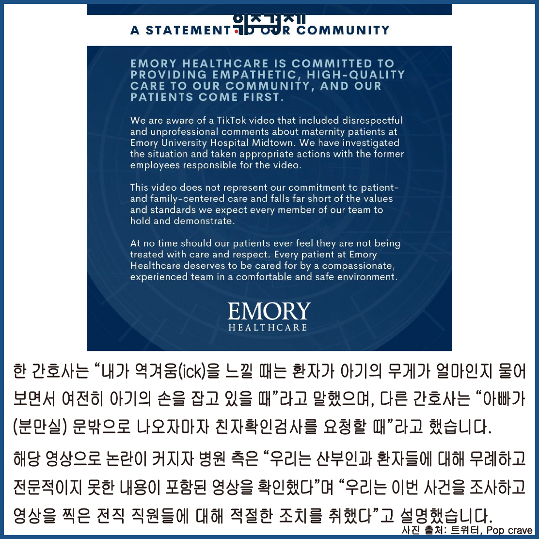 해당 영상으로 논란이 커지자 병원 측은 “우리는 산부인과 환자들에