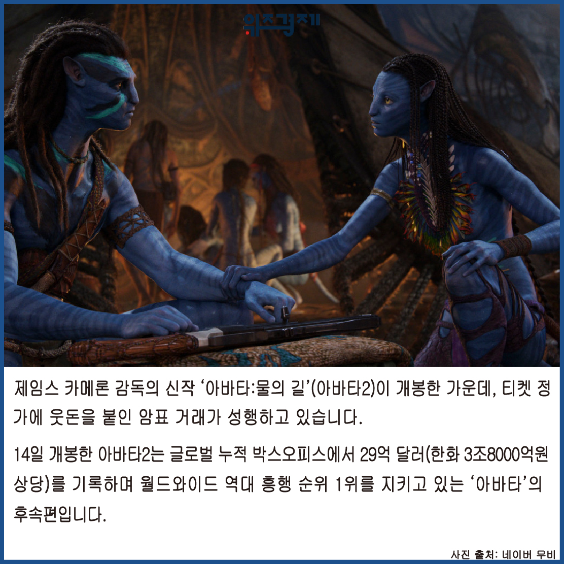 [위즈경제] 이정원 기자 = 제임스 카메론 감독의 신작 ‘아바타:물의 길’(아바타2)이 개봉한 가운데, 티켓 정가에 웃돈을 붙인 암표 거래가 성행하고 있습니다.