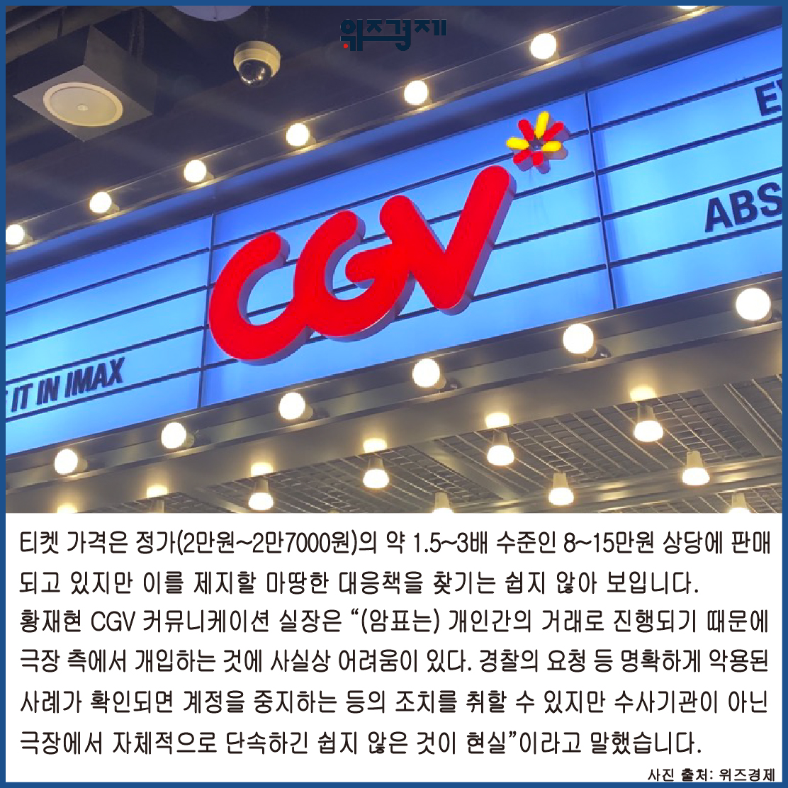 황재현 CGV 커뮤니케이션 실장은 “(암표는) 개인간의 거래로 진행되기 때문에 극장 측에서 개입하는 것에 사실상 어려움이 있다. 경찰의 요청 등 명확하게 악용된 사례가 확인되면 계정을 중지하는 등의 조치를 취할 수 있지만 수사기관이 아닌