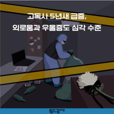 [위즈경제] 이정원 기자 = 정부가 사상 첫 고독사 실태조사를 벌인 결과, 지난해 3378명이 홀로 사망한 것으로 나타났습니다. 고독사 예방법에 따르면 ‘고독사’는 가족, 친척 등 주변 사람들과 단절된 채 홀로 사는 사람이 자살∙병사 등으로 혼자 임종을 맞고 일정한 시간이 흐른 뒤 시신이 발견되는 죽음을 가리킵니다.