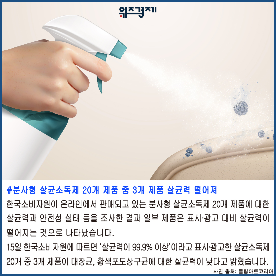 [위즈경제] 이정원 기자 = #분사형 살균소독제 20개 제품 중 3개 제품 살균력 떨어져