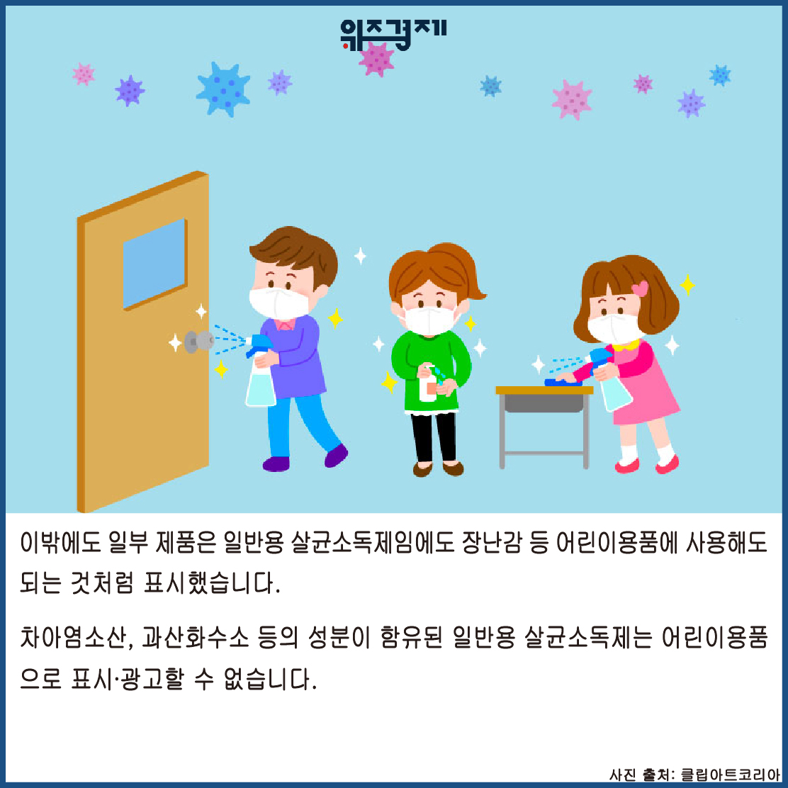 차아염소산, 과산화수소 등의 성분이함유된 일반용 살균소독제는 어린이용품으로 표시광고할 수 없습니다.