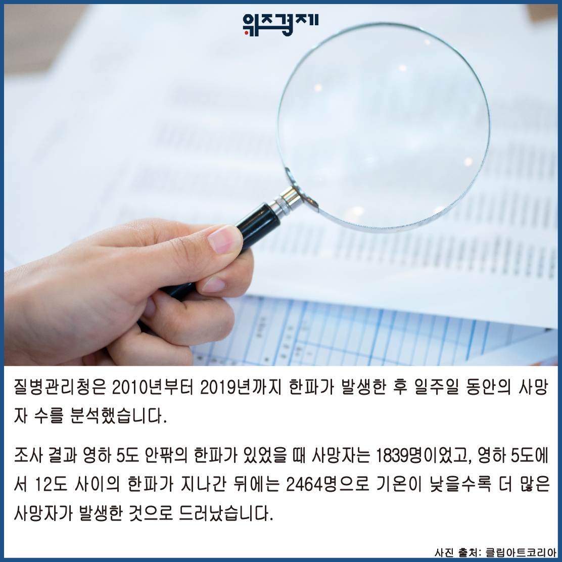 조사 결과 영하 5도 안팎의 한파가 있었을 때 사망자는 1839명이었고, 영하 5도에서