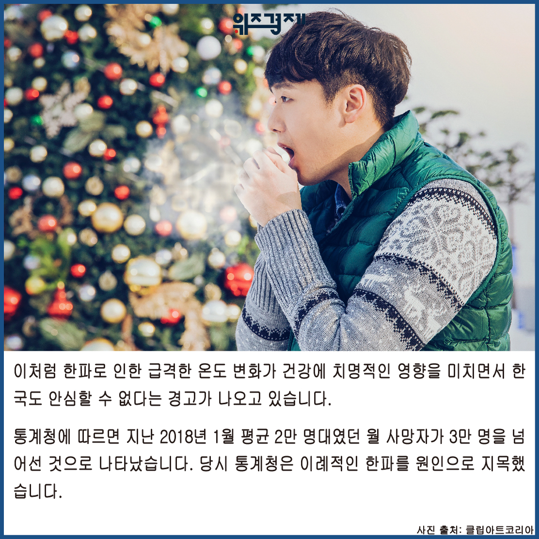 이처럼 한파로 인한 급격한 온도 변화가 건강에 치명적인 영향을 미치면서 한국도 안심할 수 없다는 경고가 나오고