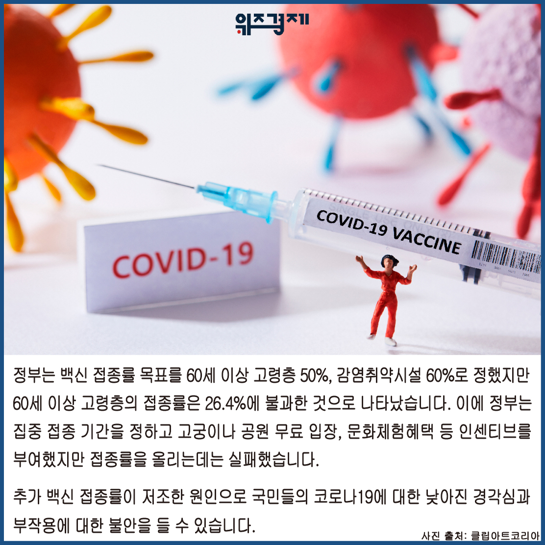 추가 백신 접종률이 저조한 원인으로 국민들의 코로나19에 대한 낮아진