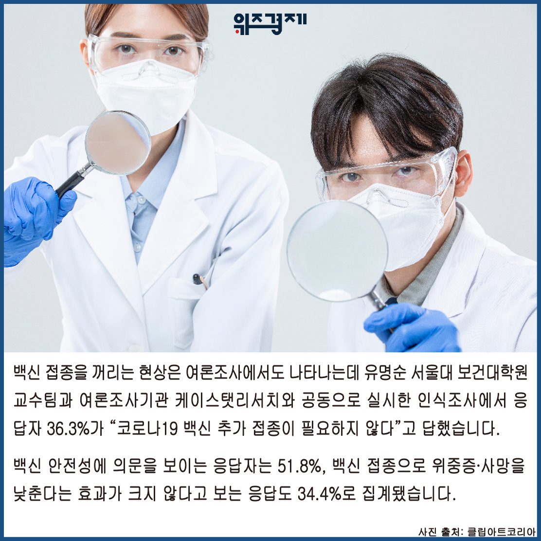 공동으로 실시한 인식조사에서 응답자 36.3%가 “코로나19 백신 추가 접종이 필요하지 않다”고 답했습니다.