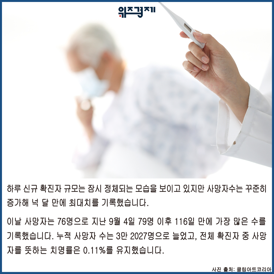 하루 신규 확진자 규모는 잠시 정체되는 모습을 보이고 있지만 사망자수는 꾸준히 증가해 넉 달 만에 최대치를 기록했습니다.
