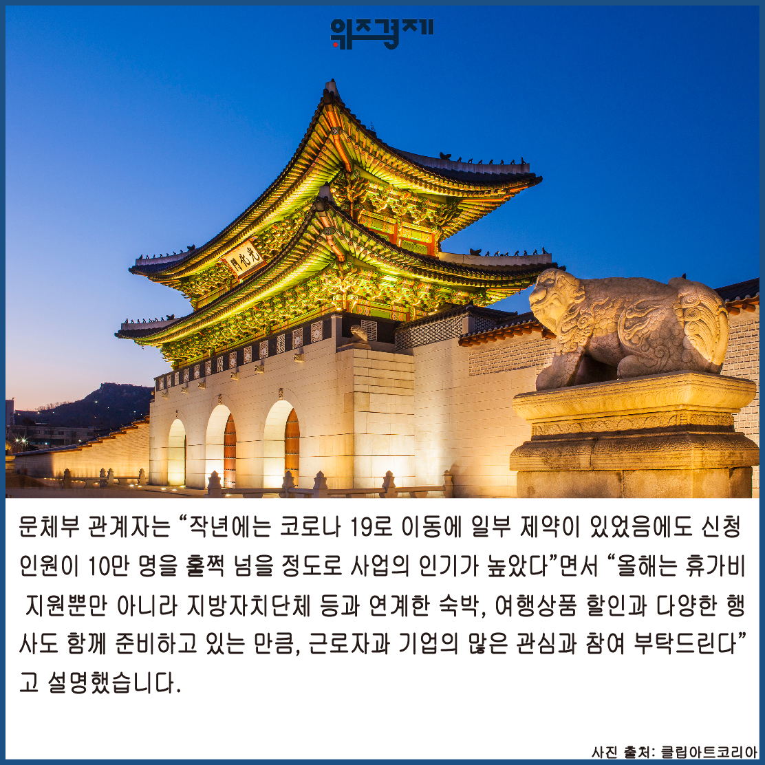 이동에 일부 제약이 있었음에도 신청 인원이 10만 명을 훌쩍 넘을 정도로 사업의 인기가 높았다”면서 “올해는 휴가비 지원뿐만 아니라 지방자치단체 등과 연계한 숙박, 여행상품 할인과 다양한 행사도 함께 준비하고 있는 만큼, 근로자과