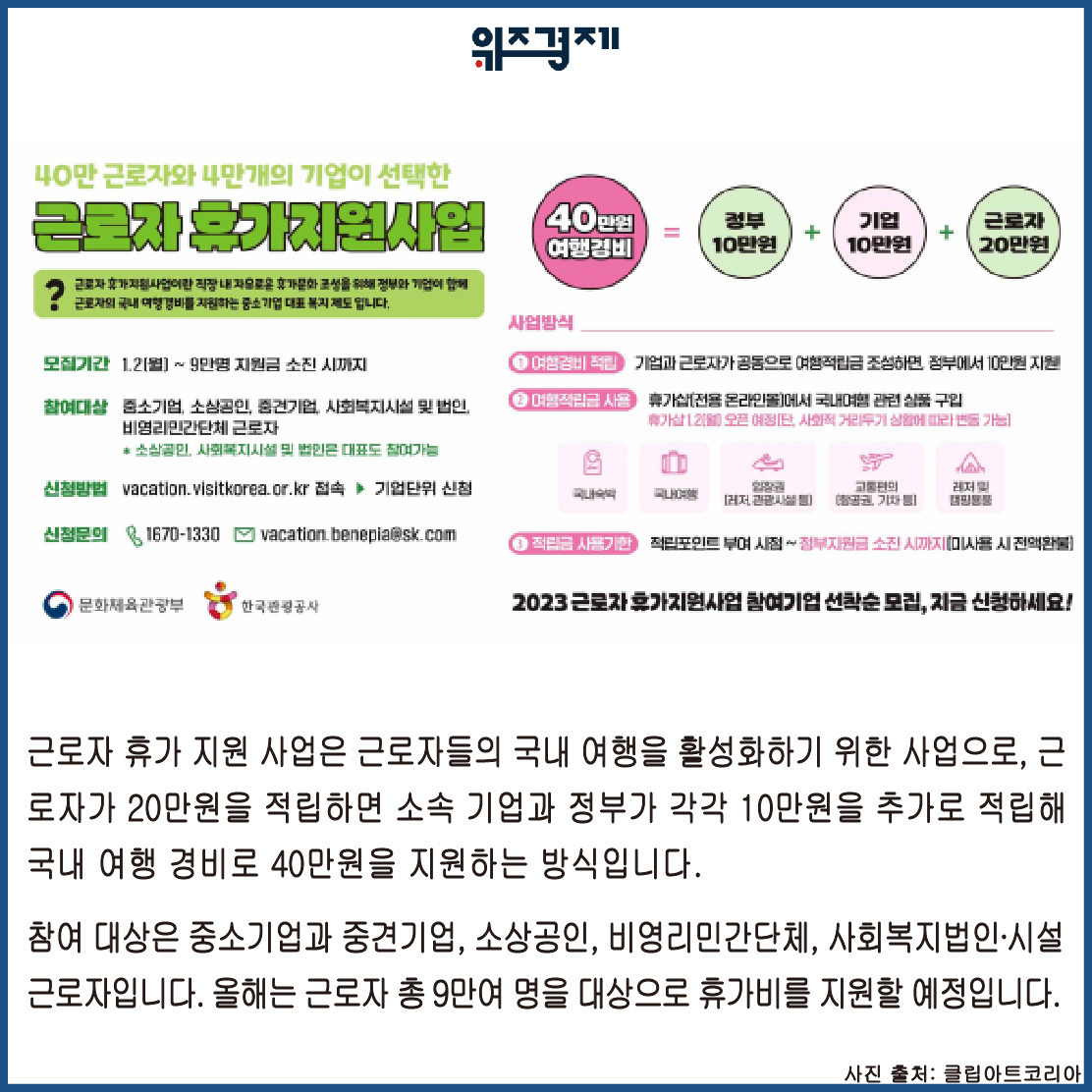 위한 근로자 휴가 지원 사업에 참여할 기업과 근로자를 모집한다고 밝혔습니다.