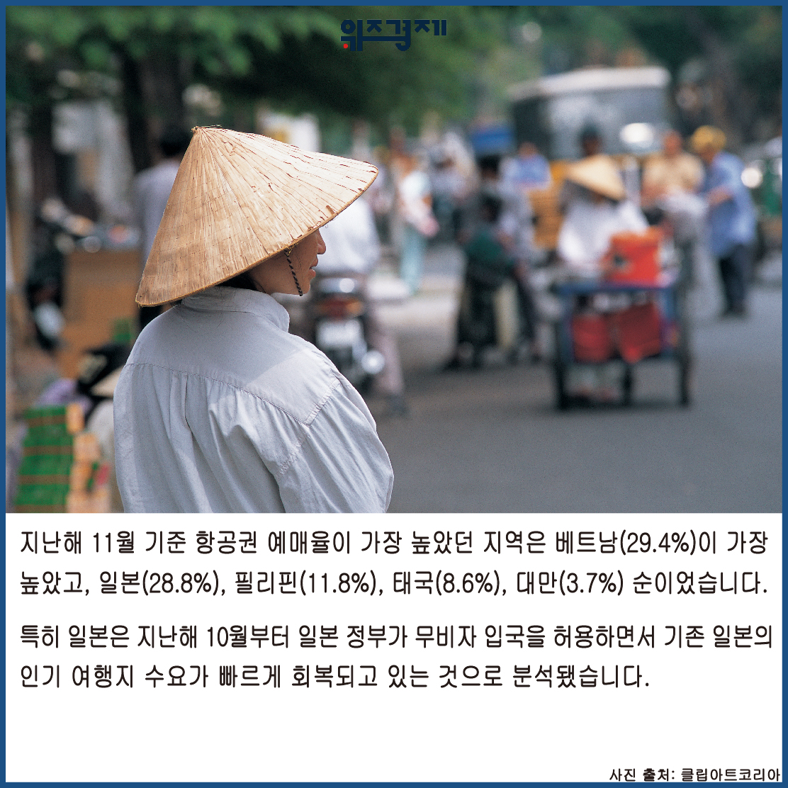 지난해 11월 기준 항공권 예매율이 가장 높았던 지역은 베트남(29.4%)이 가장 높았고, 일본(28.8%),