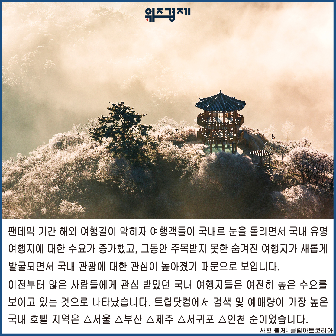 팬데믹 기간 해외 여행길이 막히자 여행객들이 국내로 눈을 돌리면서 국내 유명 여행지에 대한 수요가 증가했고, 그동안 주목받지 못한 숨겨진 여행지가 새롭게 발굴되면서 국내 관광에 대한 관심이 높아졌기 때문으로 보입니다.