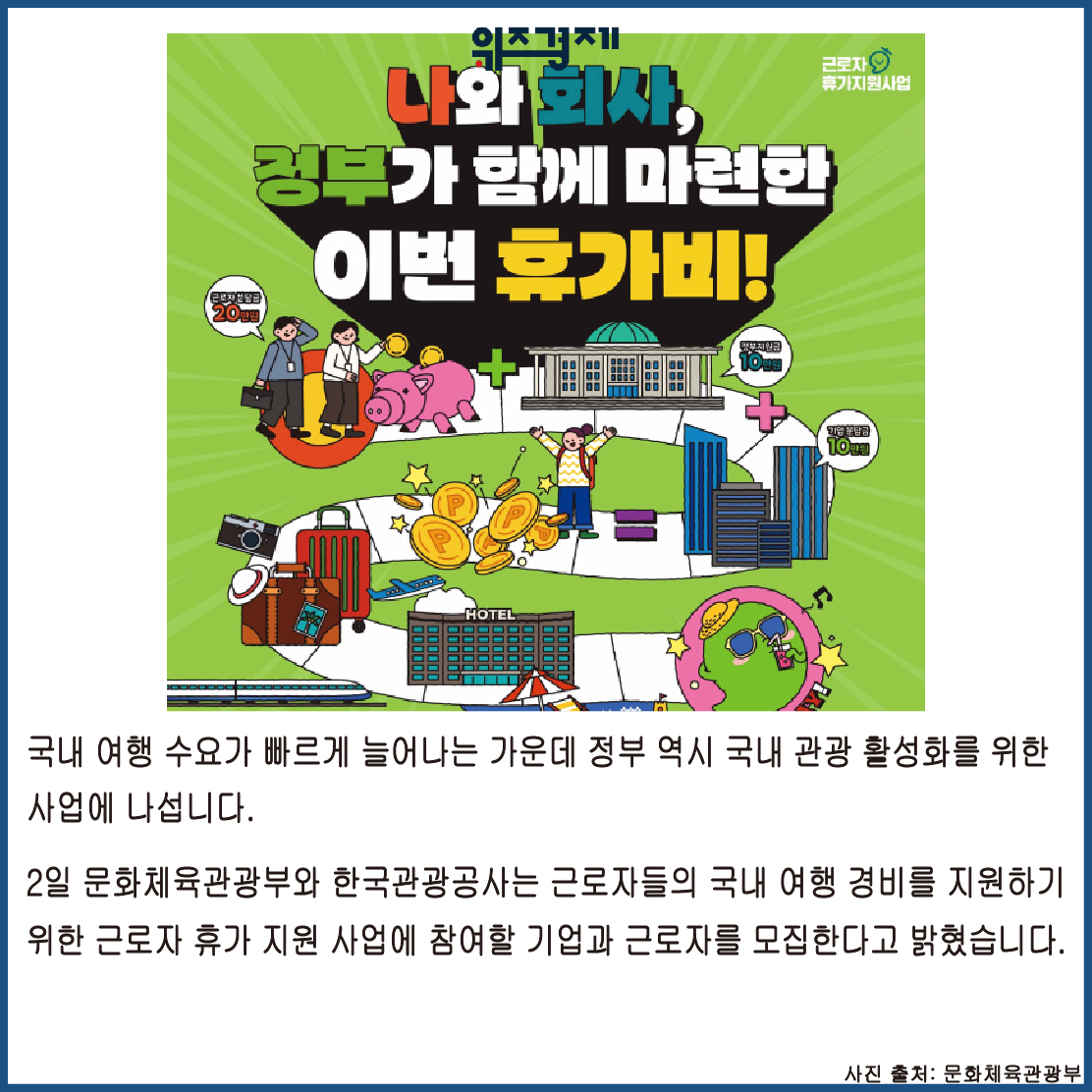 근로자 휴가 지원 사업은 근로자들의 국내 여행을 활성화하기 위한 사업으로, 근로자가