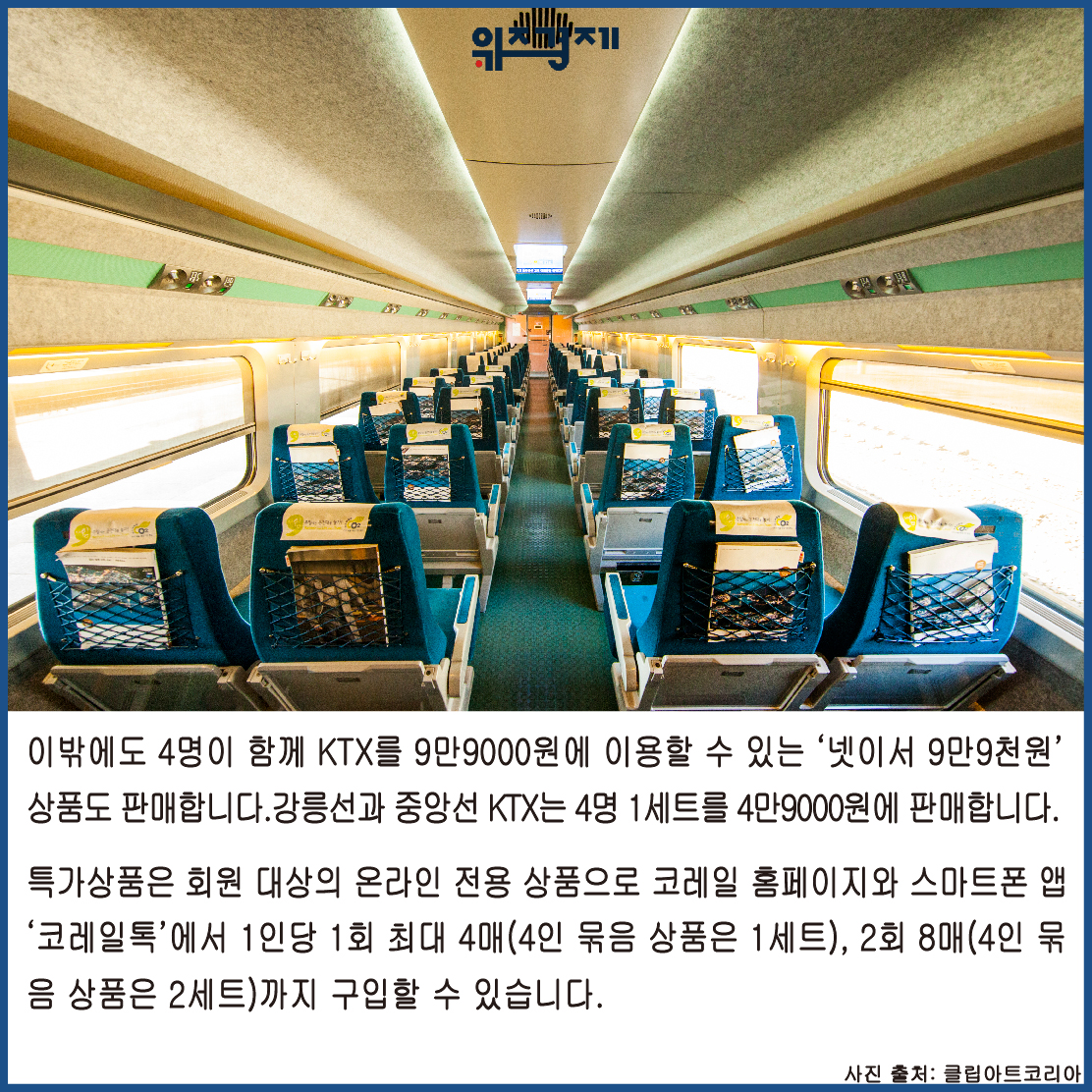 9만9000원에 이용할 수 있는 ‘넷이서 9만9천원’ 상품도 판매합니다.강릉선과 중앙선 KTX는 4명 1세트를 4만9000원에 판매합니다.