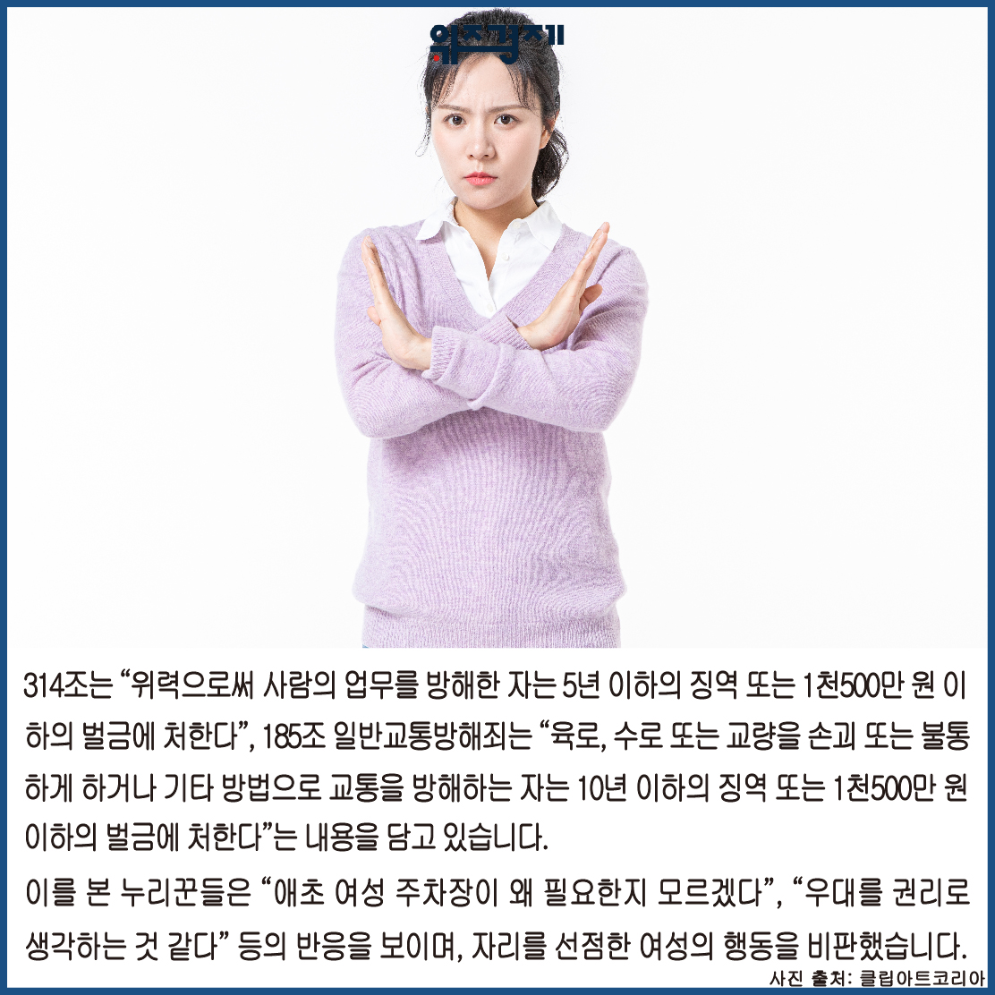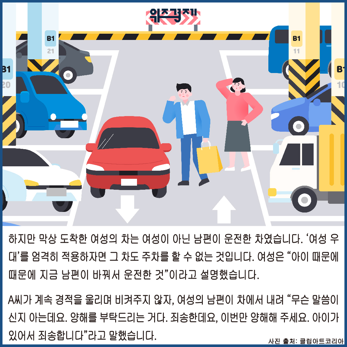 우대’를 엄격히 적용하자면 그 차도 주차를 할 수 없는 것입니다. 여성은