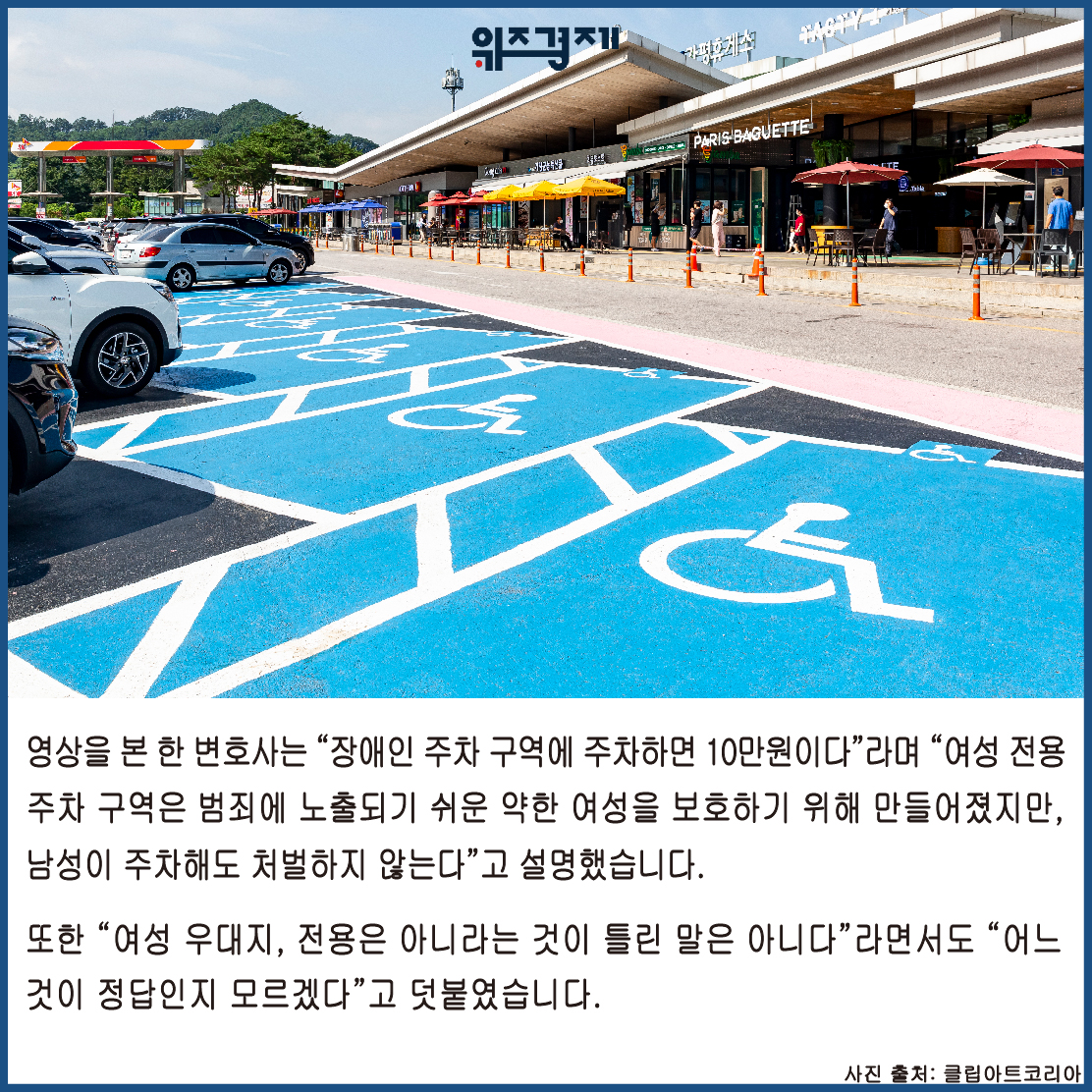 영상을 본 한 변호사는 “장애인 주차 구역에 주차하면 10만원이다”라며 “여성