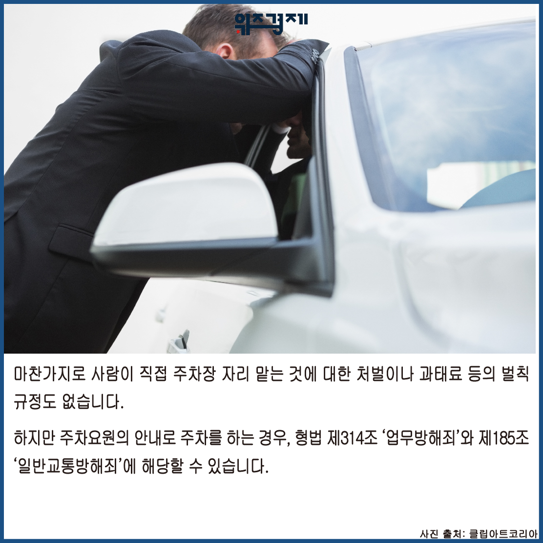 하지만 주차요원의 안내로 주차를 하는 경우, 형법 제314조 ‘업무방해죄’와