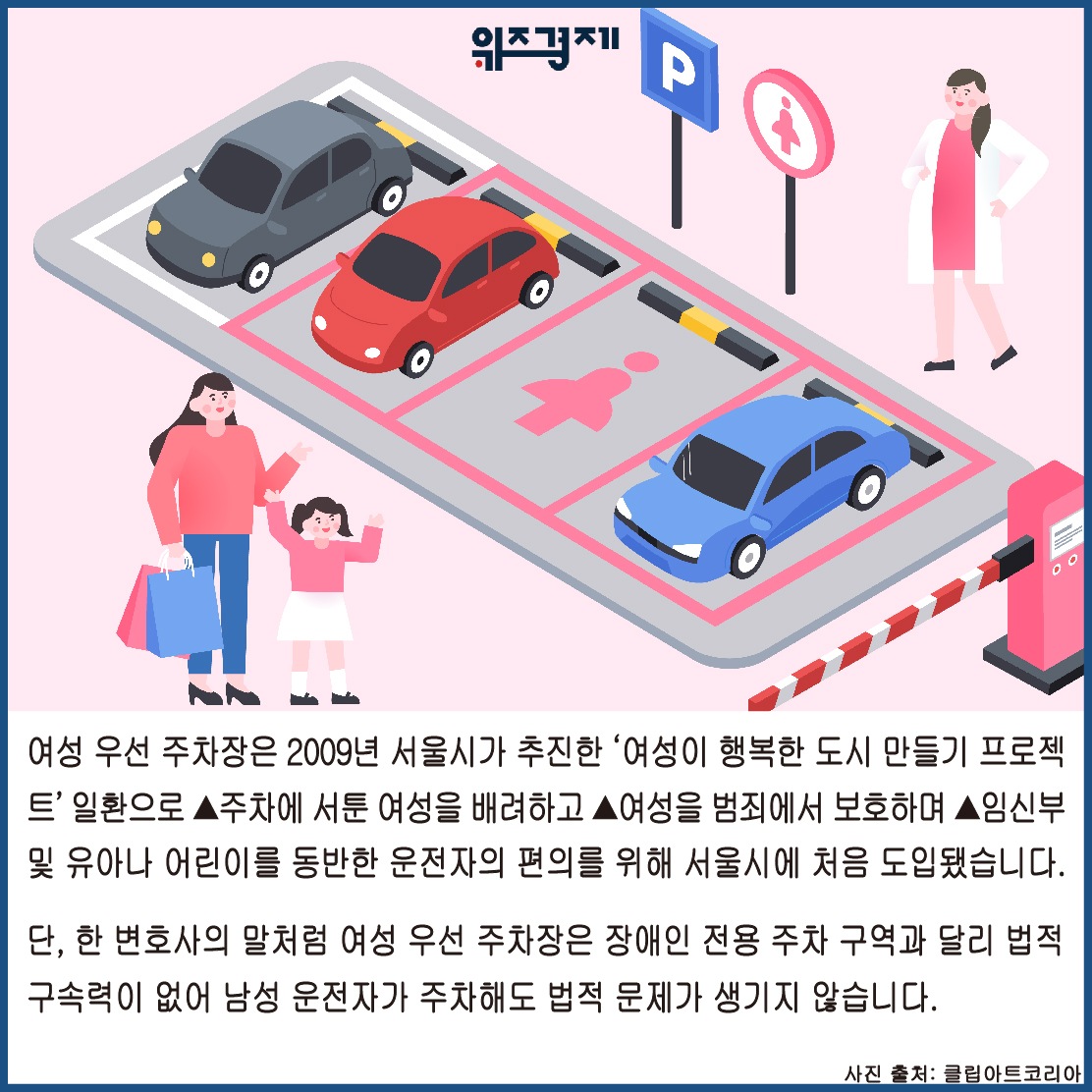 단, 한 변호사의 말처럼 여성 우선 주차장은 장애인 전용 주차 구역과 달리 법적