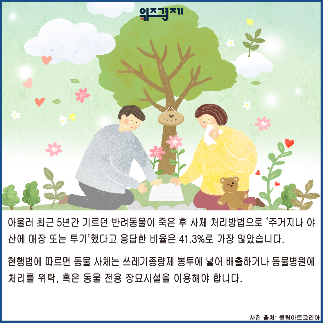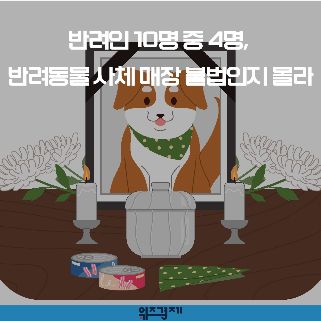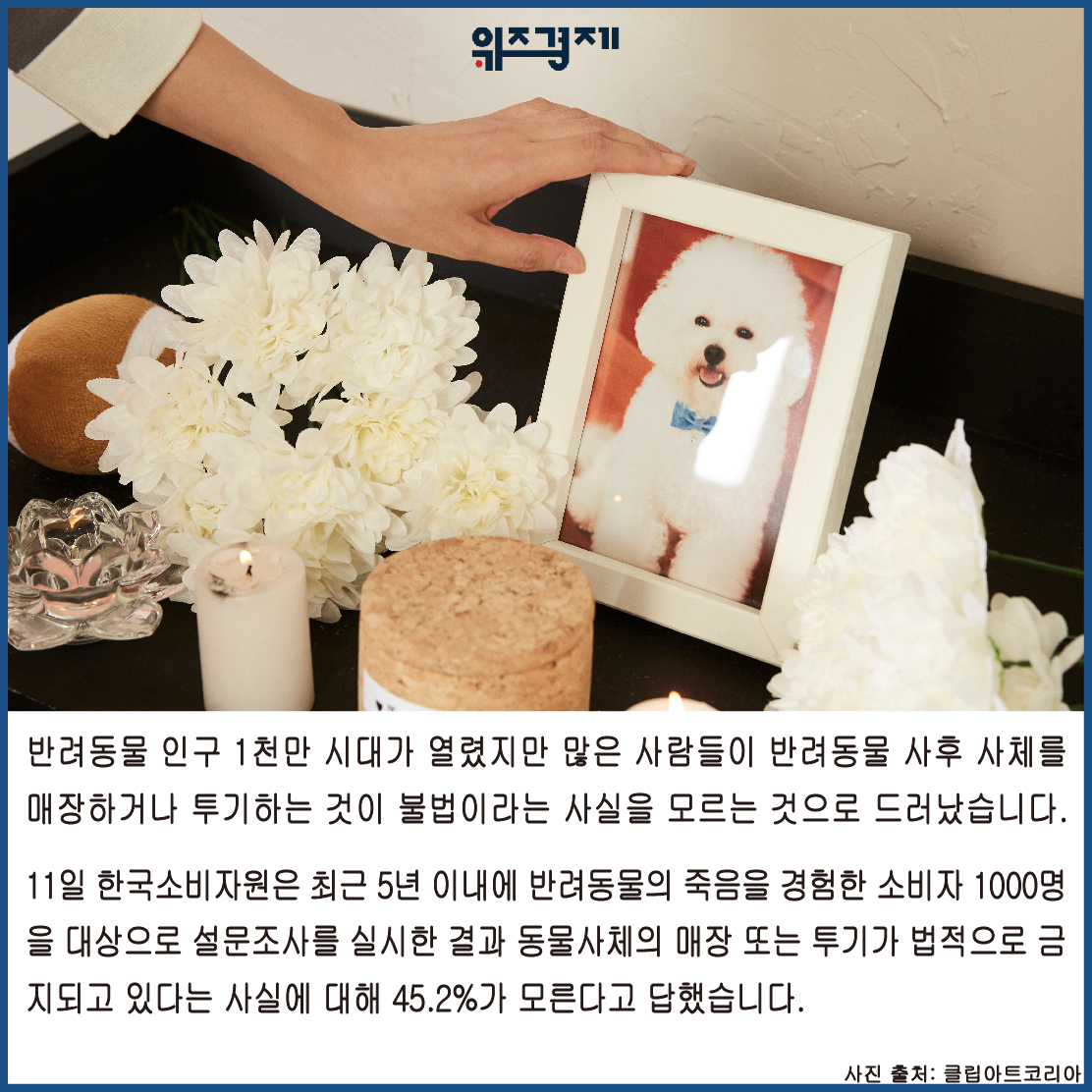 [위즈경제] 이정원 기자 =반려동물 인구 1천만 시대가 열렸지만 많은 사람들이 반려동물 사후 사체를 매장하거나 투기하는 것이 불법이라는 사실을 모르는 것으로 드러났습니다.