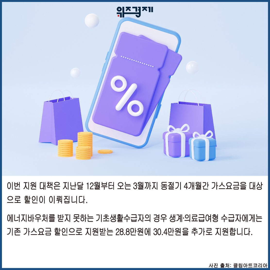 이번 지원 대책은 지난달 12월부터 오는 3월까지 동절기 4개월간 가스요금을 대상으로 할인이 이뤄집니다.