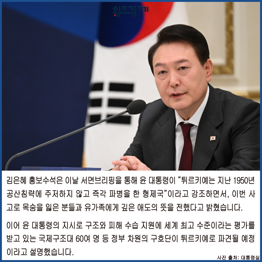 이어 윤 대통령은 “외교부와 현지 공관을 통해 튀르키예 당국과 긴밀하게