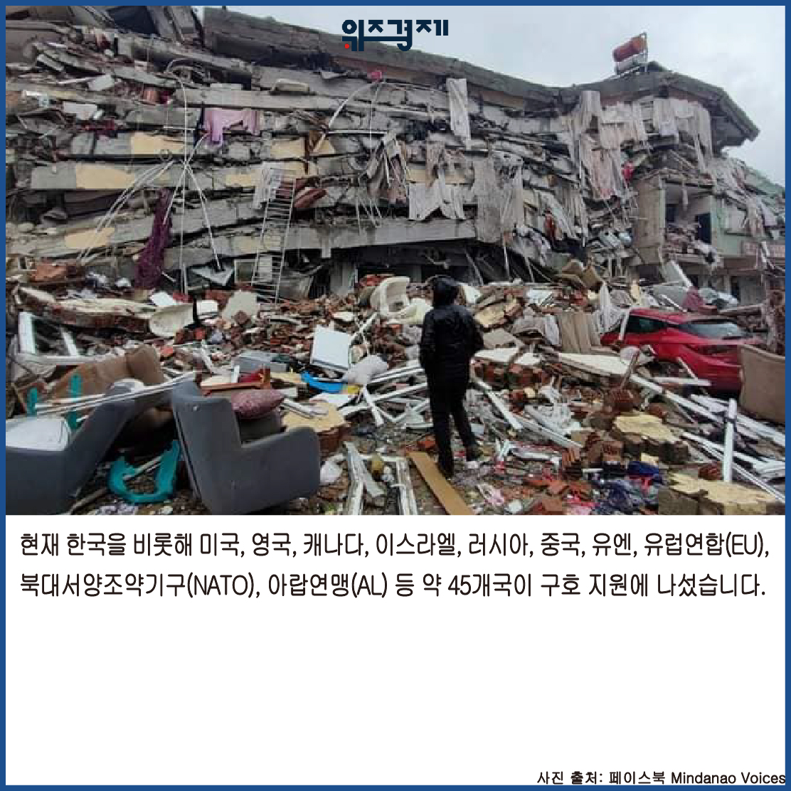 현재 한국을 비롯해 미국, 영국, 캐나다, 이스라엘, 러시아, 중국, 유엔, 유럽연합(EU), 북대서양조약기구(NATO), 아랍연맹(AL) 등 약 45개국이 구호 지원에 나섰습니다.