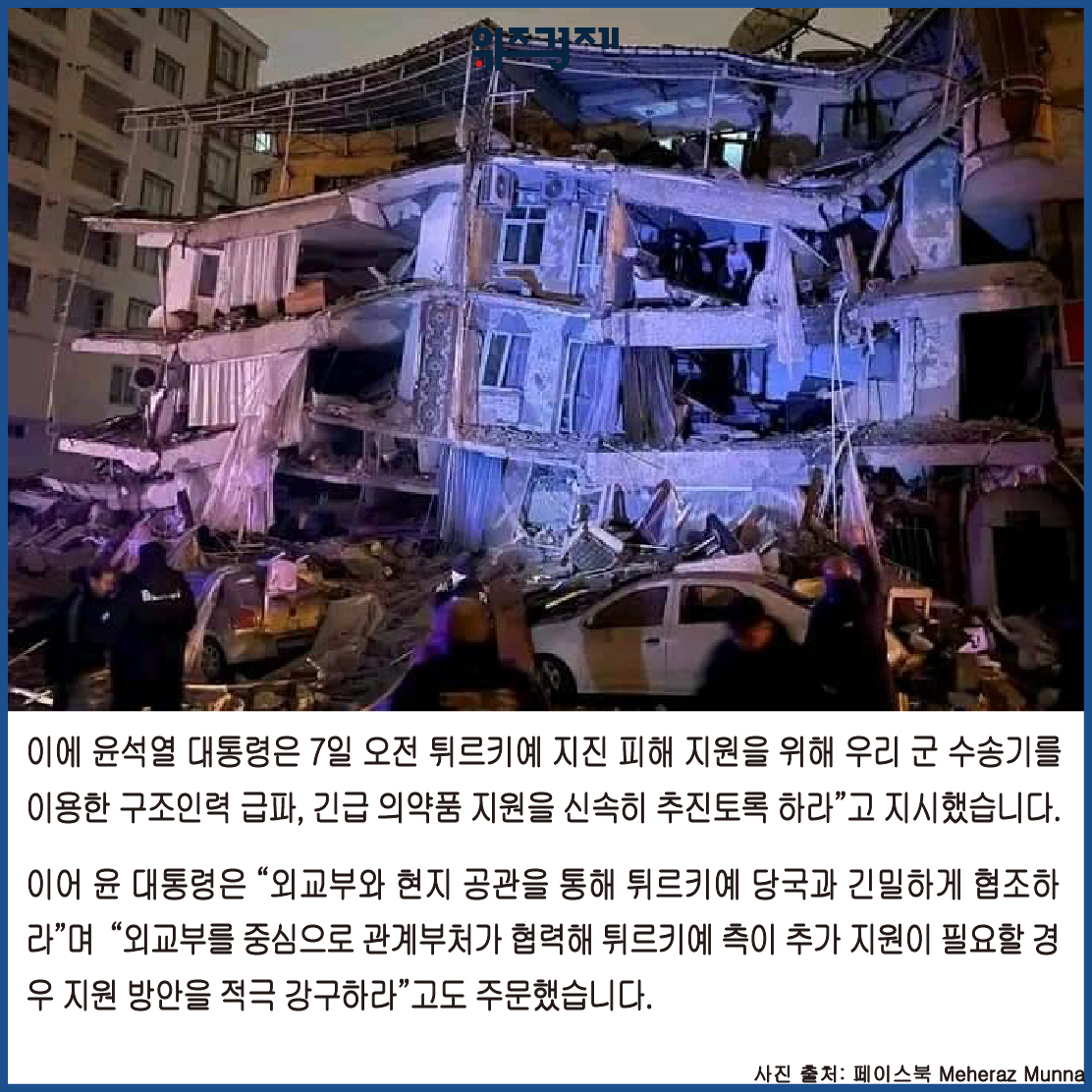 이에 윤석열 대통령은 7일 오전 튀르키예 지진 피해 지원을 위해 우리