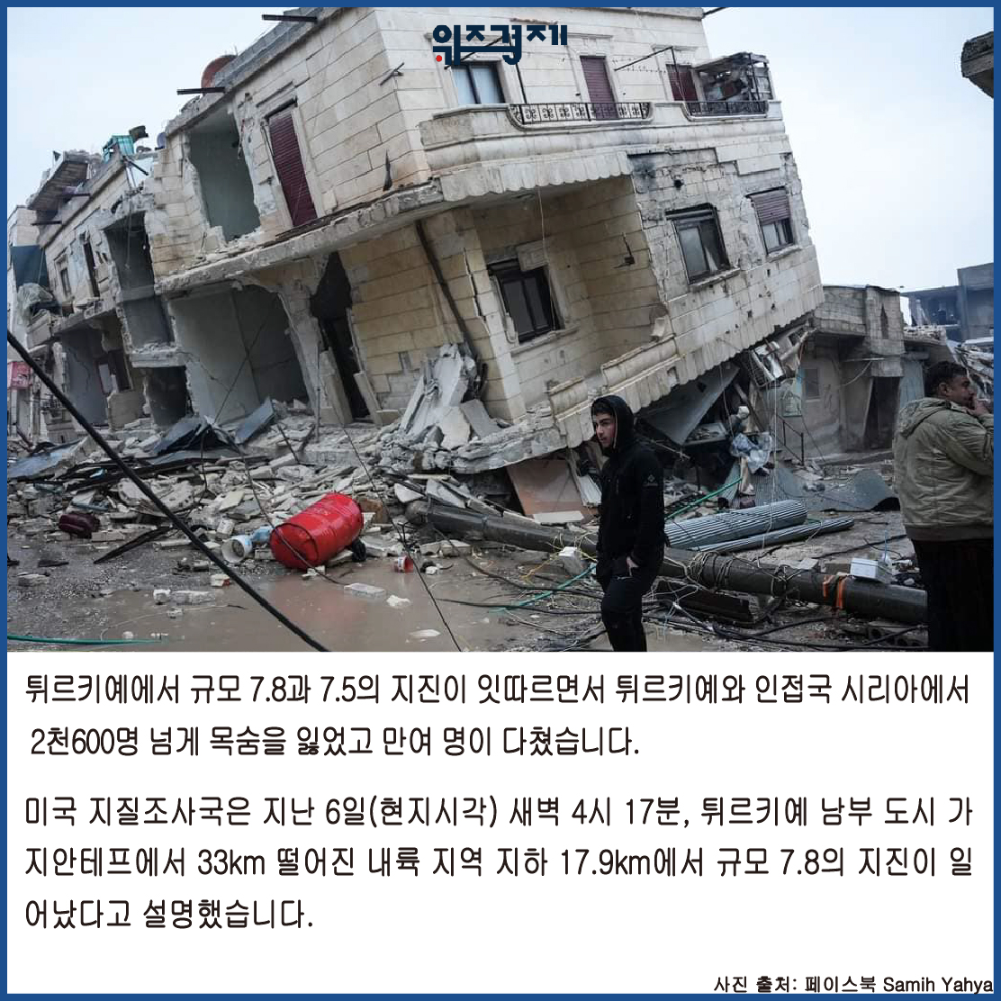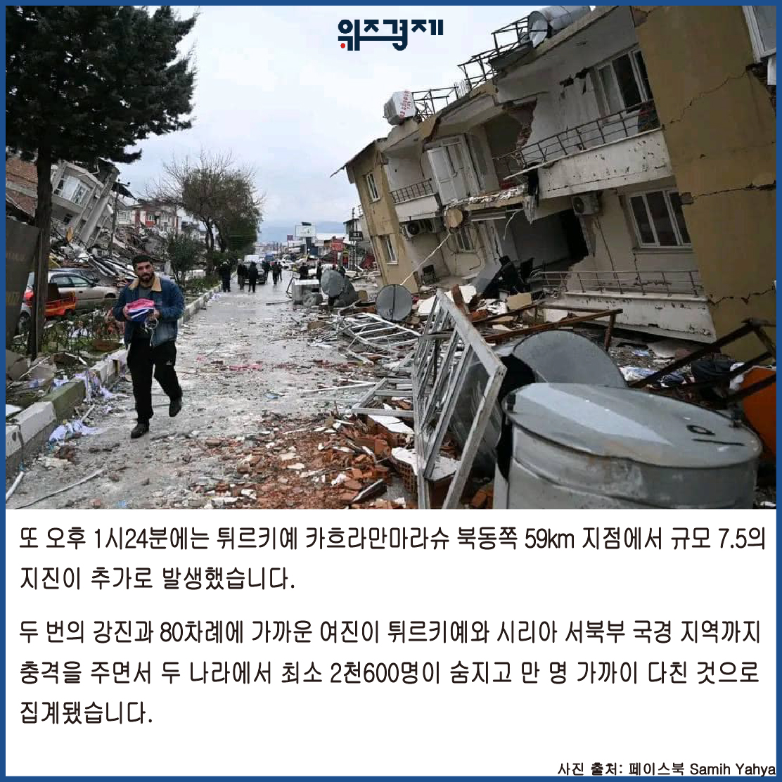 [위즈경제] 이정원 기자 =튀르키예에서 규모 7.8과 7.5의 지진이 잇따르면서 튀르키예와 인접국 시리아에서 2천600명 넘게 목숨을 잃었고 만여 명이 다쳤습니다.
