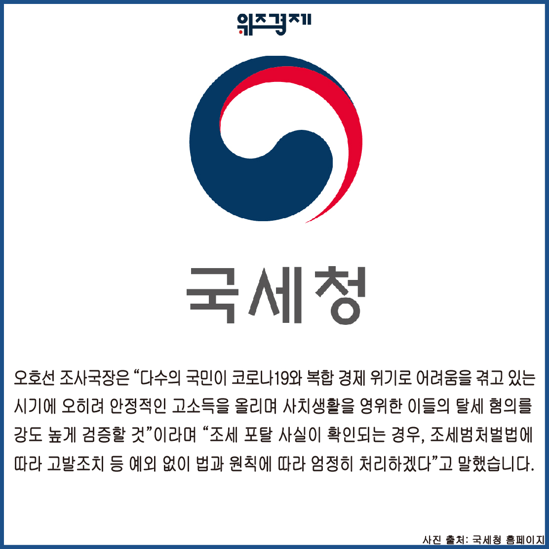 어려움을 겪고 있는 시기에 오히려 안정적인 고소득을 올리며 사치생활을 영위한 이들의 탈세 혐의를 강도 높게 검증할 것”이라며 “조세 포탈 사실이 확인되는 경우, 조세범처벌법에 따라 고발조치 등 예외 없이 법과 원칙에 따라 엄정히 처리하겠다”고 말했습니다.