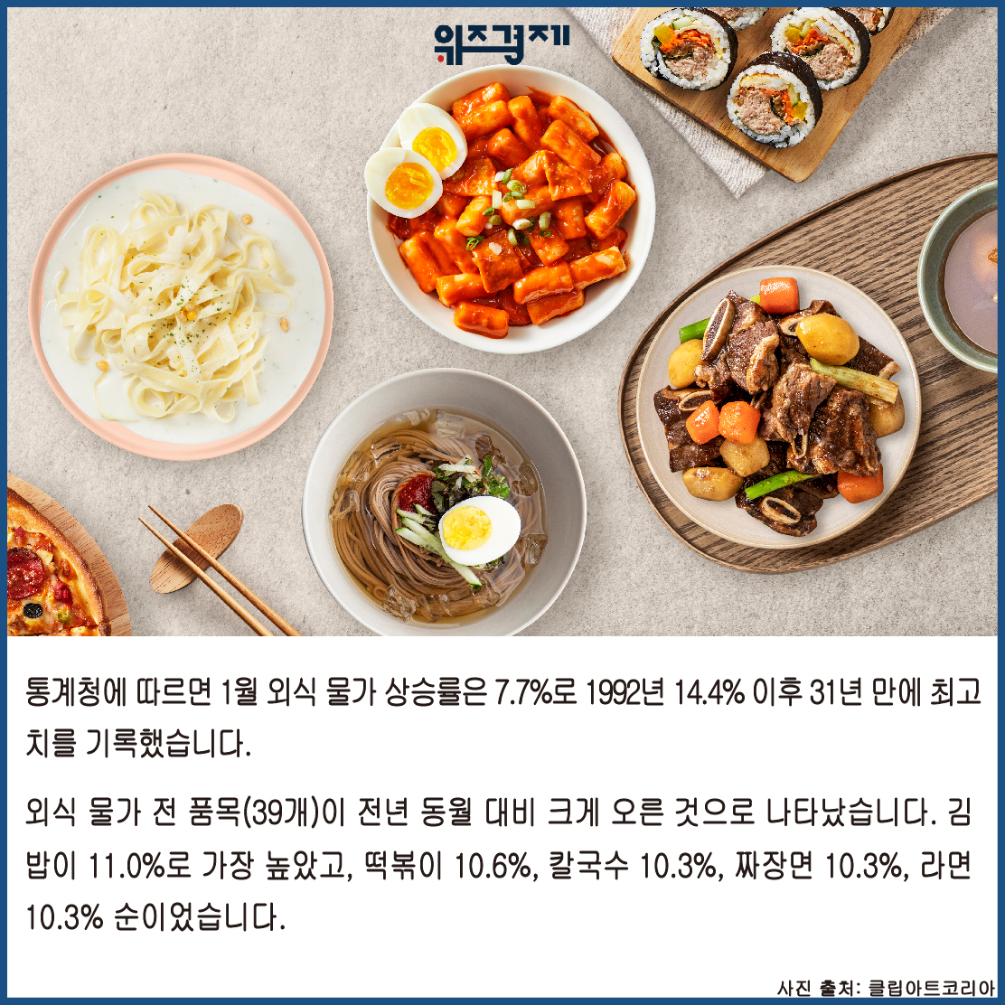 통계청에 따르면 1월 외식 물가 상승률은 7.7%로 1992년 14.4% 이후