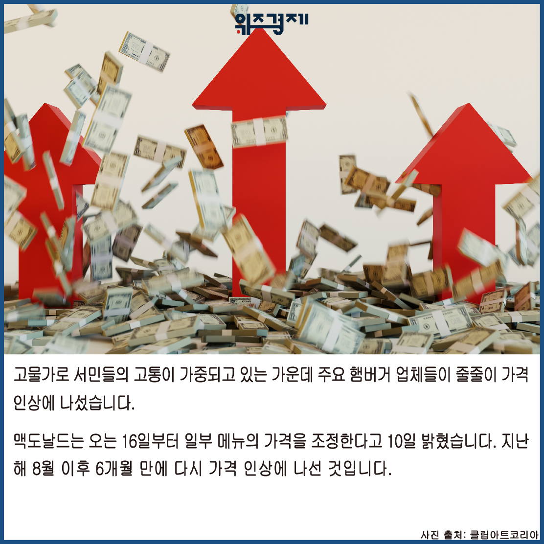 [위즈경제] 이정원 기자 =고물가로 서민들의 고통이 가중되고 있는 가운데 주요 햄버거 업체들이 줄줄이 가격 인상에 나섰습니다.